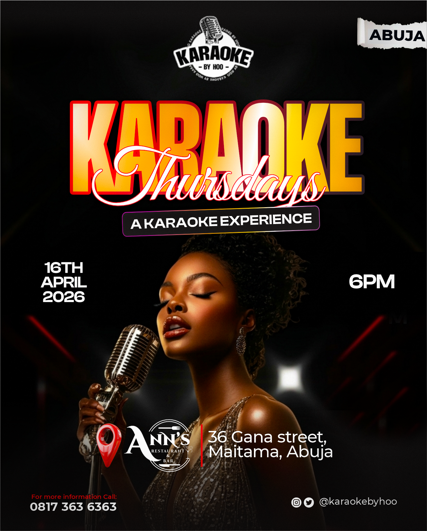 Venue: Ann's Restaurant, No 36 Gana street Maitama Abuja