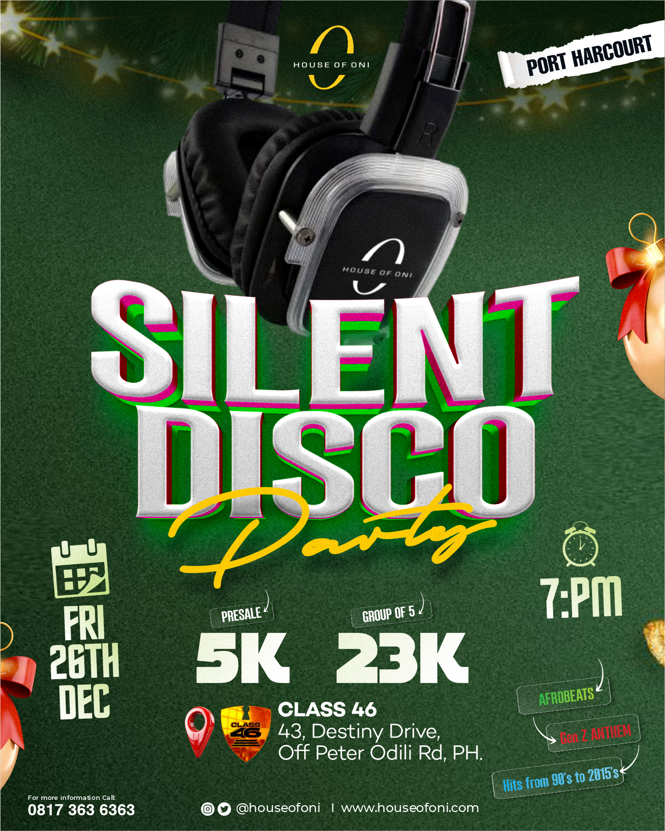 Venue: Class 46, NO 43 Destiny Drive off peter odili rd